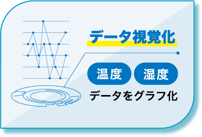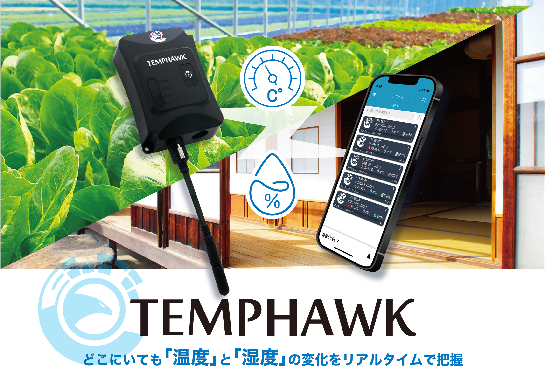 温度・湿度を計測し、環境データとして送信する「テンプホーク」。 設置工事が不要で簡単に接続でき、スマートフォンやPCを使いどこでもデータのチェックが可能です。 |
